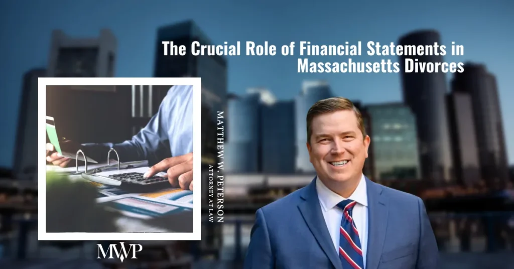 Handling financial statements in a Massachusetts divorce requires precision, legal knowledge, and strategic acumen. The Law Office of Matthew W. Peterson is dedicated to providing robust representation, ensuring that your financial statements are prepared with utmost accuracy and that your interests are vigorously defended. From meticulous document preparation to fierce advocacy in negotiations and in court, we fight every step of the way to protect your financial rights and future.